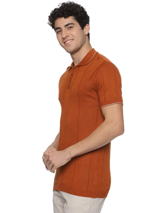 Linen Rich Knit Polo Burnt Orange T-Shirt