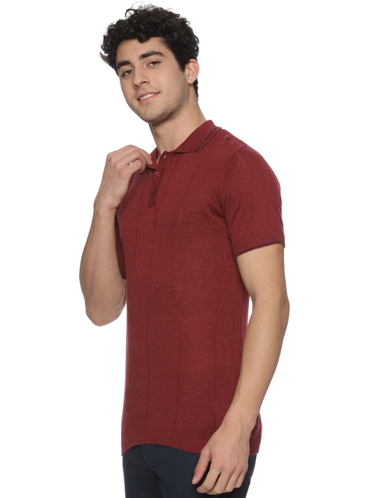 Linen Rich Knit Polo Burnt Maroon T-Shirt