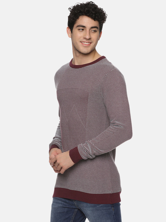 Maroon Stripe Knit Full Sleeves Sweater