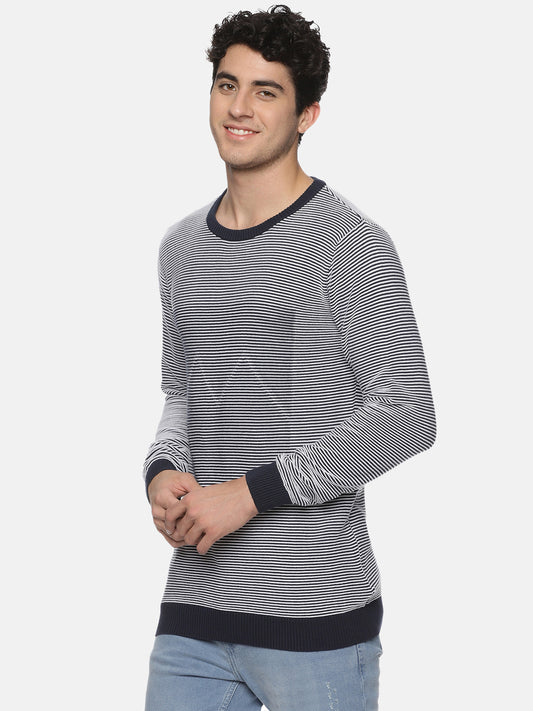 Blue Stripe Knit Full Sleeves Sweater