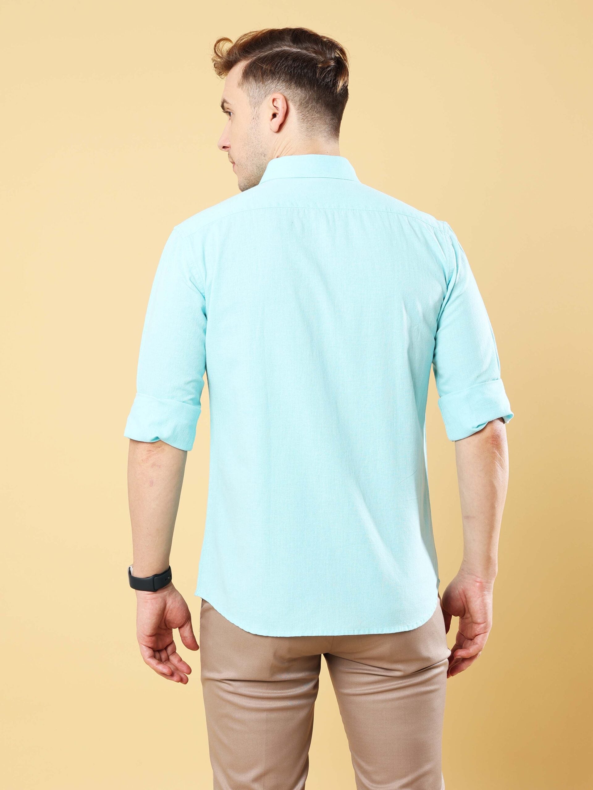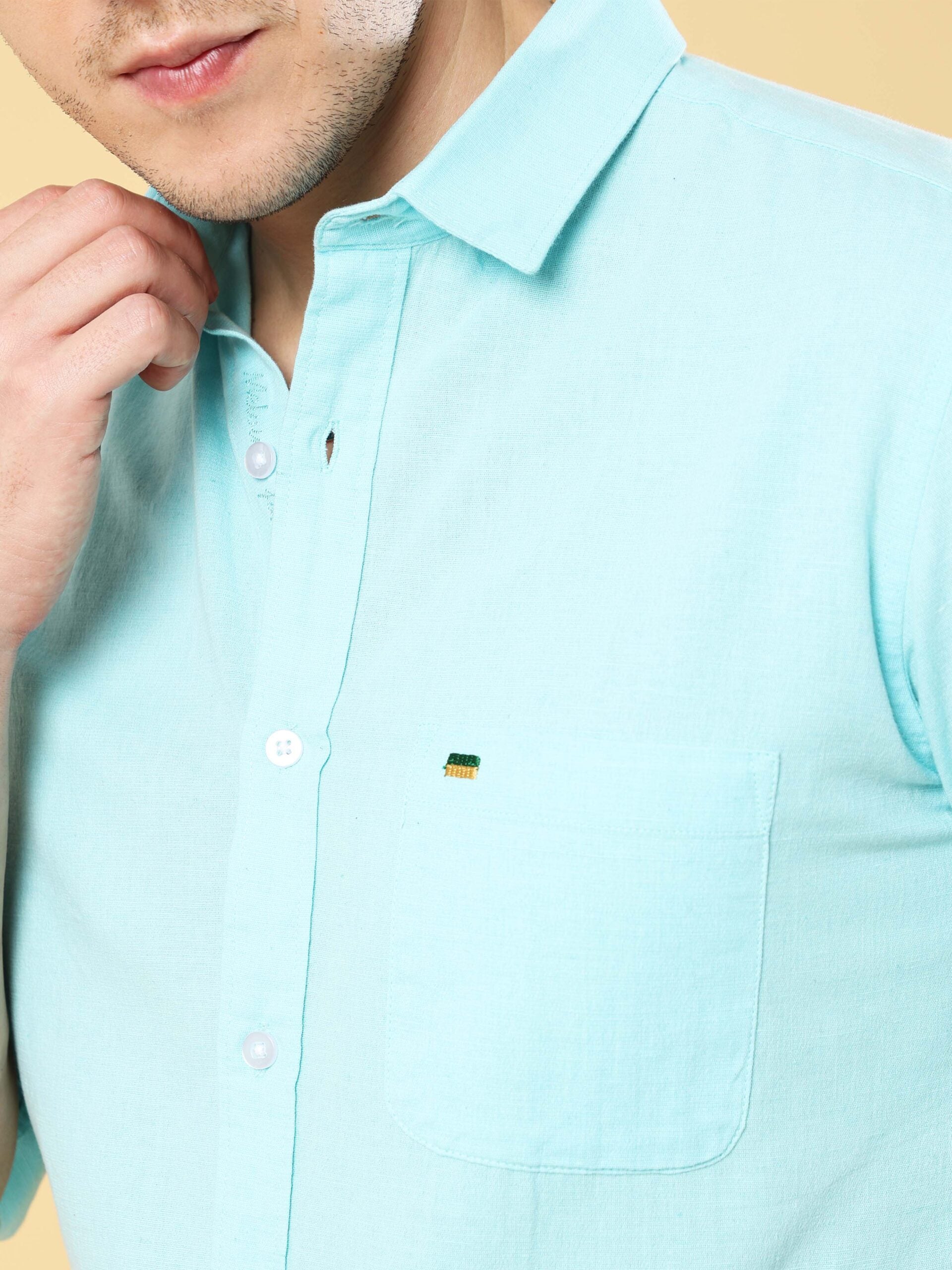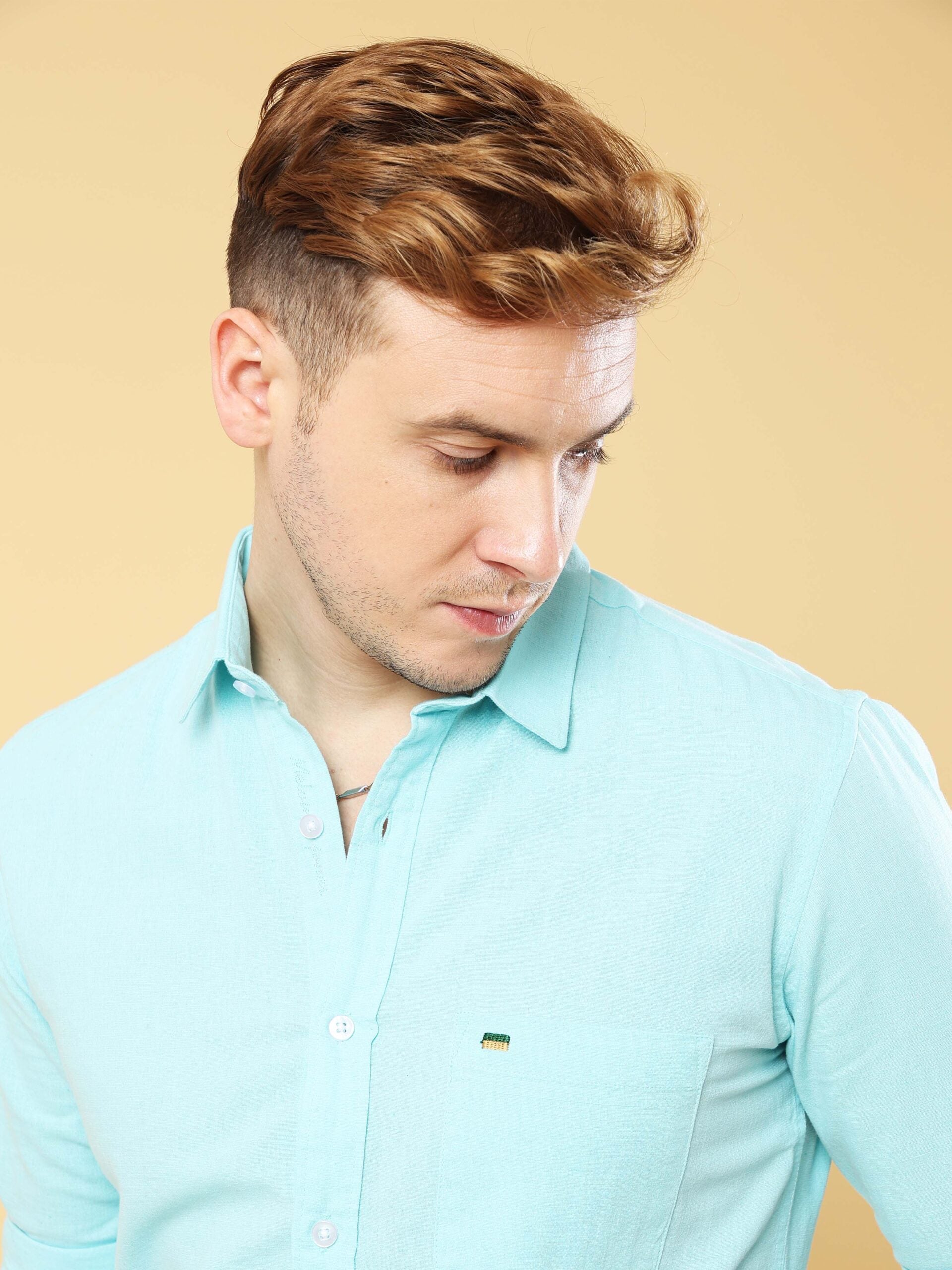 This premium aqua blue shirt is made using a blend of 60's linen and 40's cotton. It has been crafted with the best workmanship which adds to its style and comfort. This beautiful shirt would make any man look the classiest and most well-dressed for every occasion.