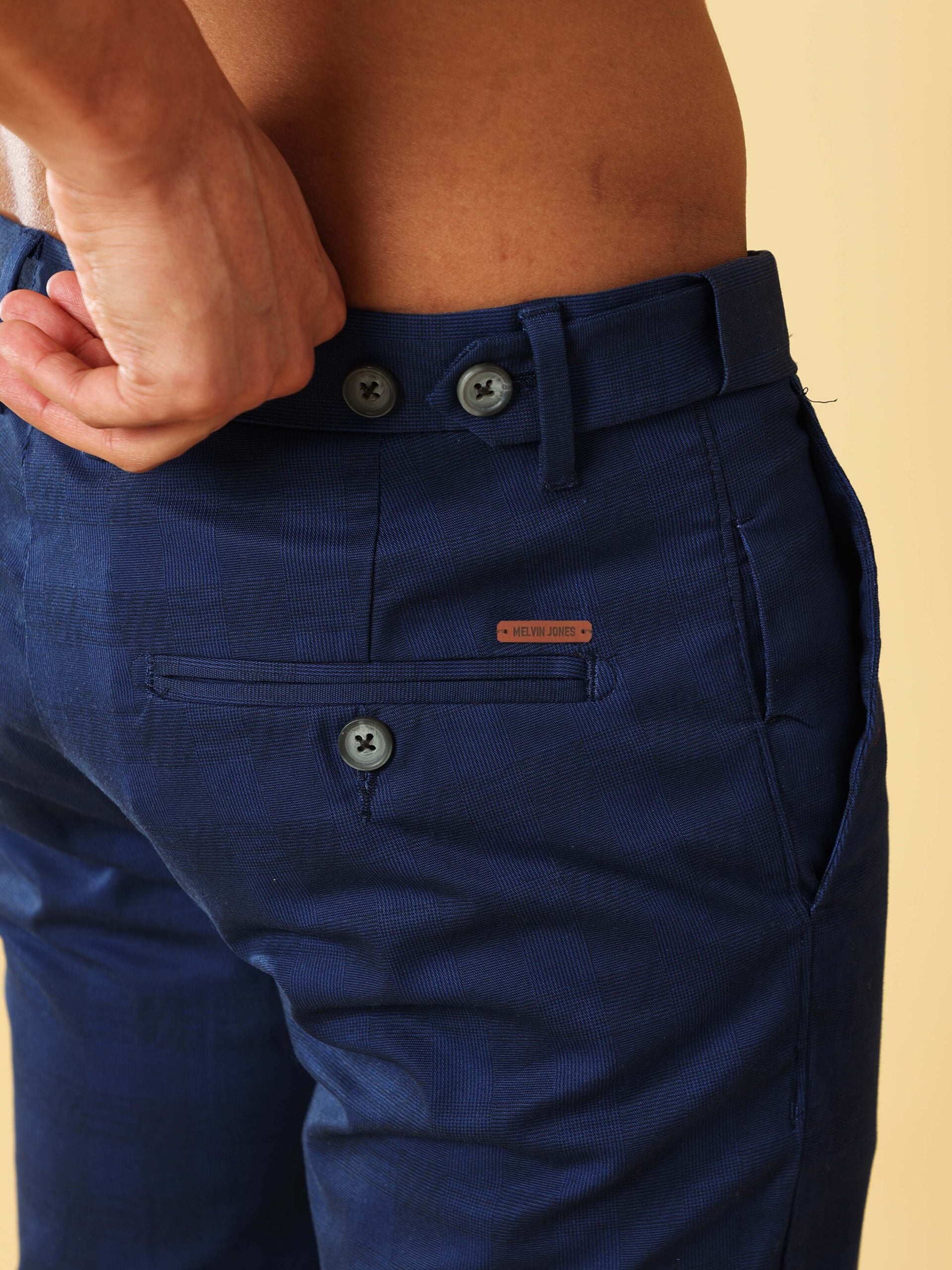 This trouser is a smart choice in anyone’s wardrobe. It has a micro-check pattern which takes it up a notch if compared to a regular navy trouser. Pair it with a crisp white, ivory, or yellow shirt in cotton or linen to make it a style statement, or just pair it with a white, olive, or yellow t-shirt and you are ready for a fun weekend.