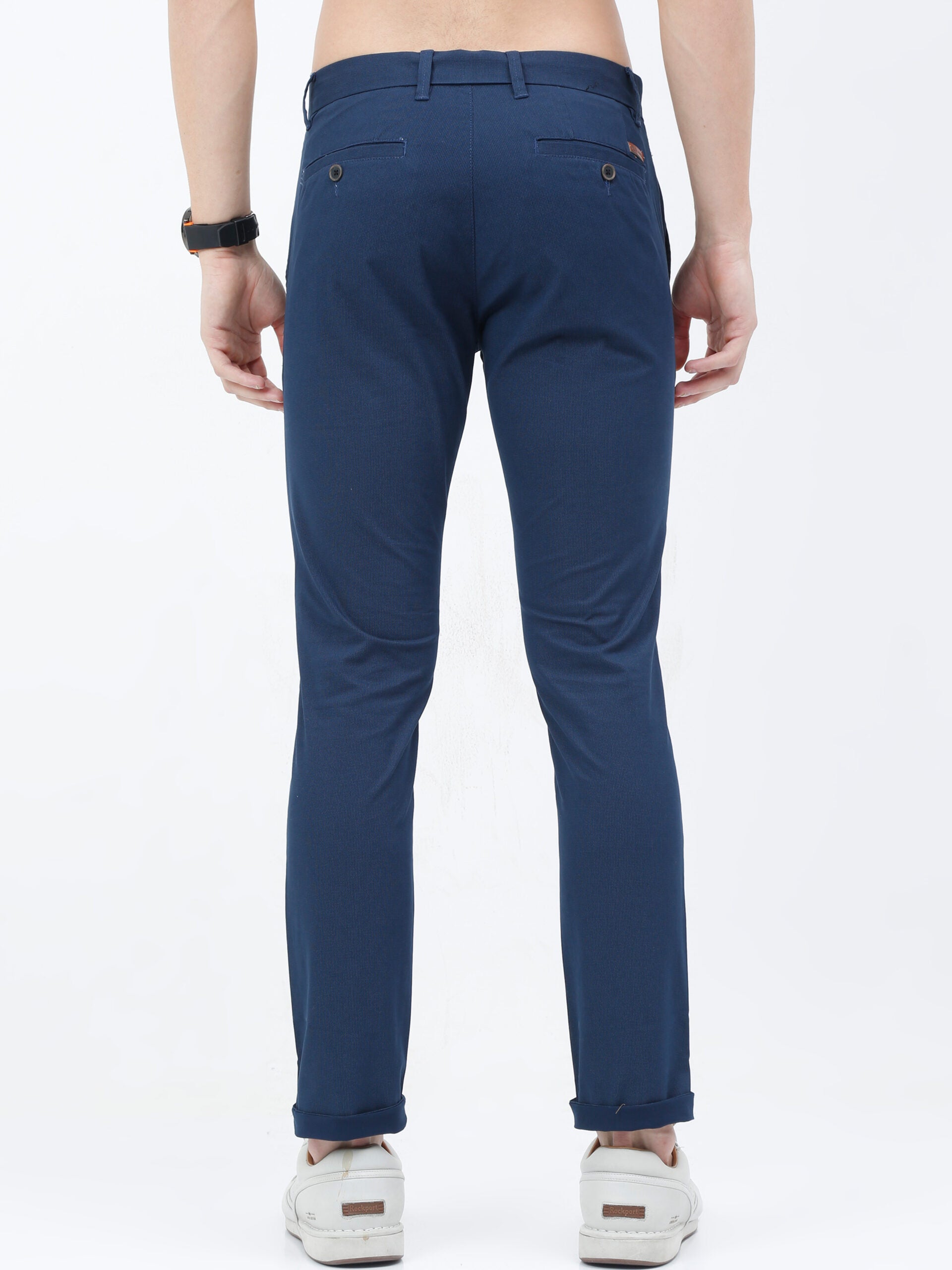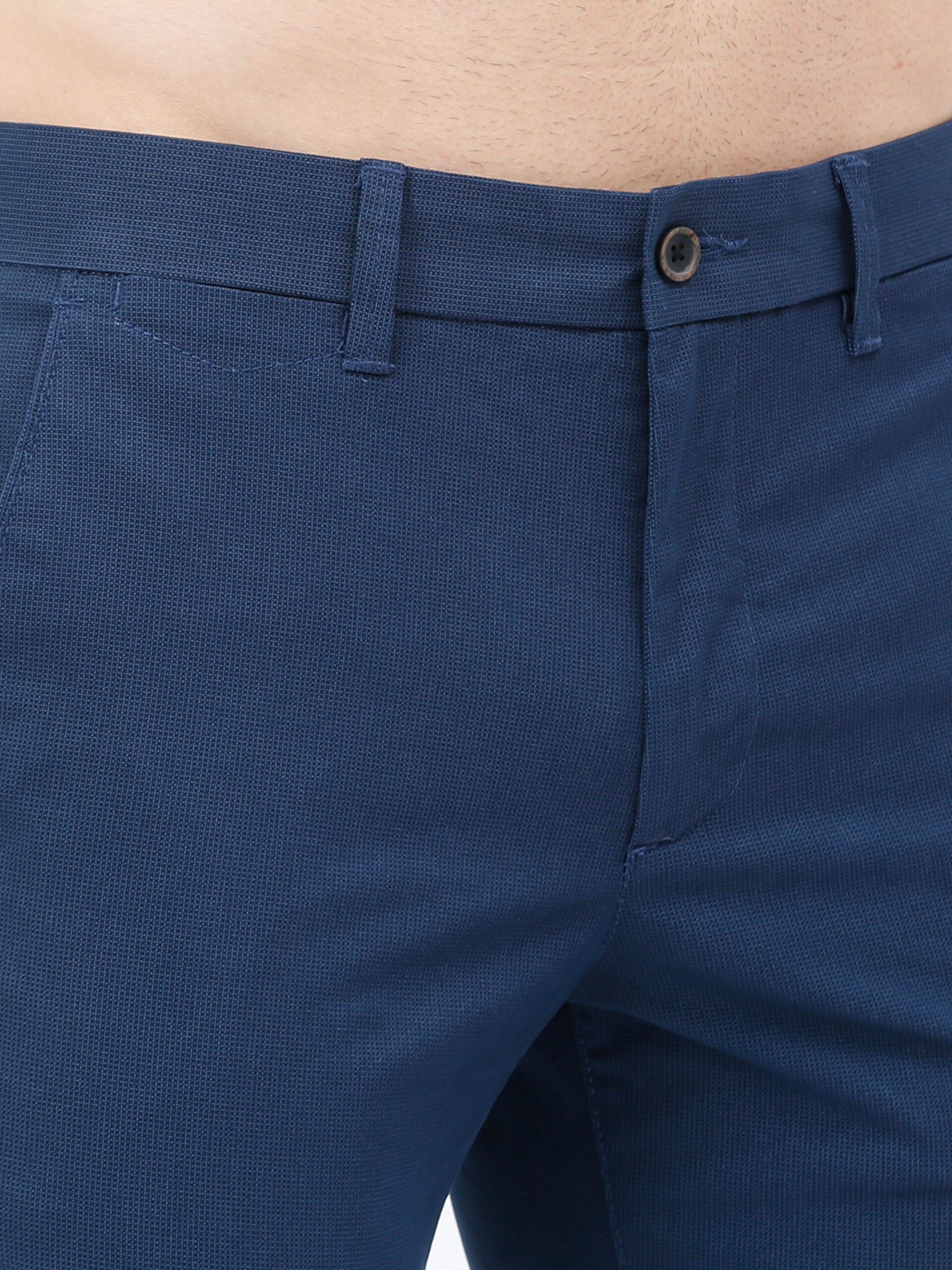 This navy trouser is a smart choice in anyone’s wardrobe. It has a micro-check pattern which makes it look smarter than regular trousers. Pair it with a crisp white, ivory, or yellow shirt in cotton or linen to make a style statement, or just pair it with a white, olive, or yellow t-shirt for a fun weekend.