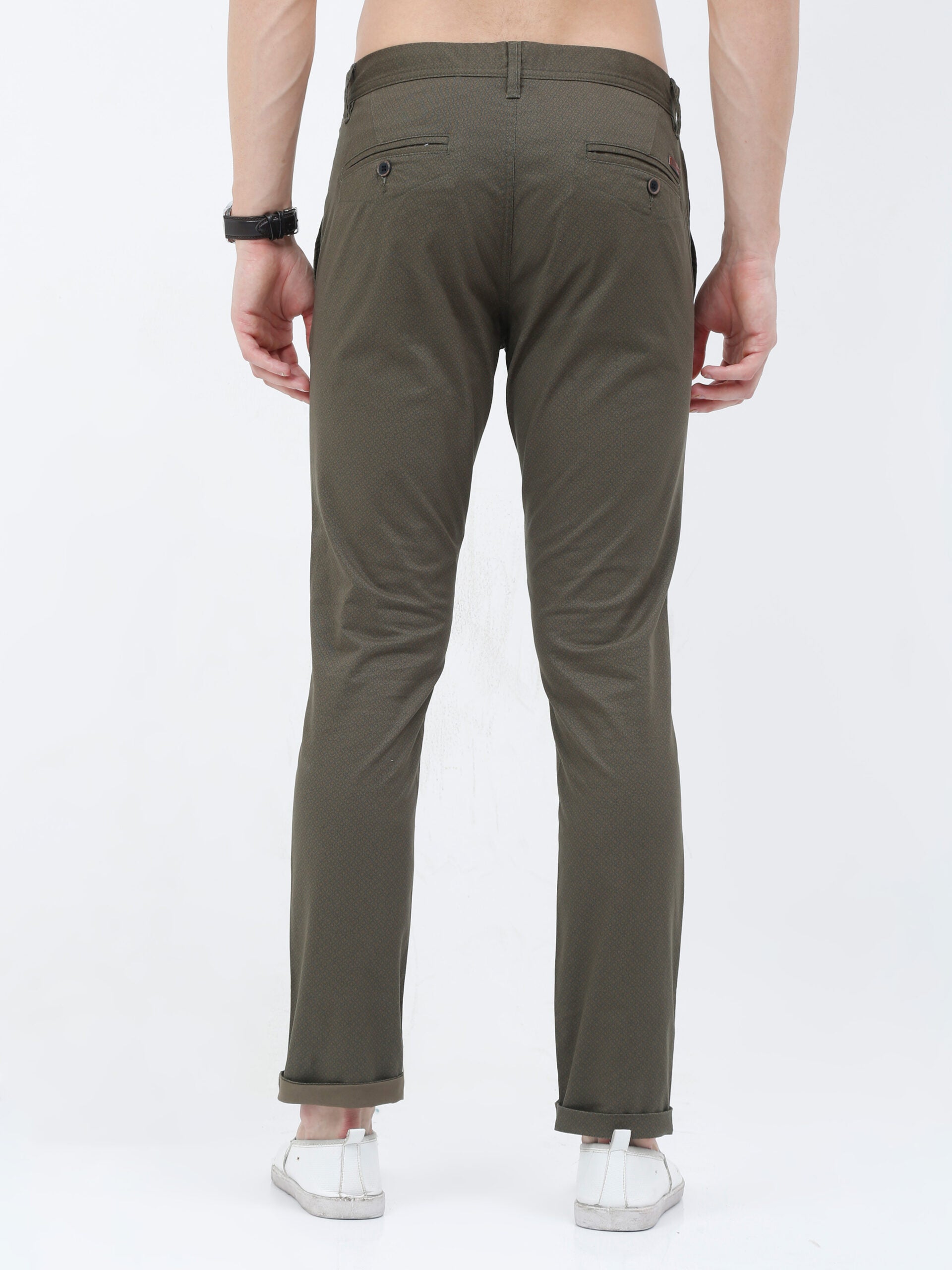 This olive print trouser is a chino with a modern twist. The abstract print with a rhombus pattern makes it a must-have piece from our collection. These trousers have been designed keeping in mind the highest level of style and comfort. Pair it with a crisp white, ivory, or dark shirt in cotton or linen to make a style statement, or just pair it with a classic white, navy, or black T-shirt for a fun weekend.