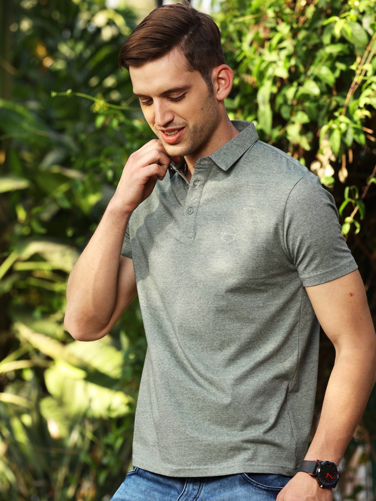 A premium cotton polo in a rich sage green shade to be paired with a classic chino or a denim. This T-shirt is a 30’s super combed premium yarn dyed with a super stretch spandex yarn that has been treated to be the smoothest and softest. It has been crafted in an eco-friendly environment and is super stretchable for all day comfort and durability.